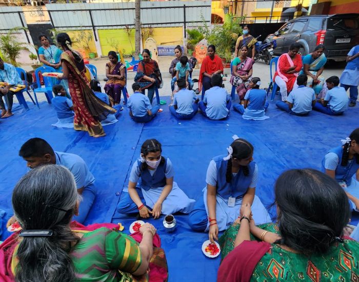 Padha Pooja Celebrations at Karpaga Vigneswara Vidyalaya, Ullagaram. The Management of Karpaga Vigneswara Vidyalaya organised Padha Pooja Celebrations for the students of Class IX, X and XI for the 6th consecutive year. Parents felt very happy when their ward washed the feet pronouncing mantras in sanskrit. Tears rolled down from the eyes of the parents which was most wonderful movement.